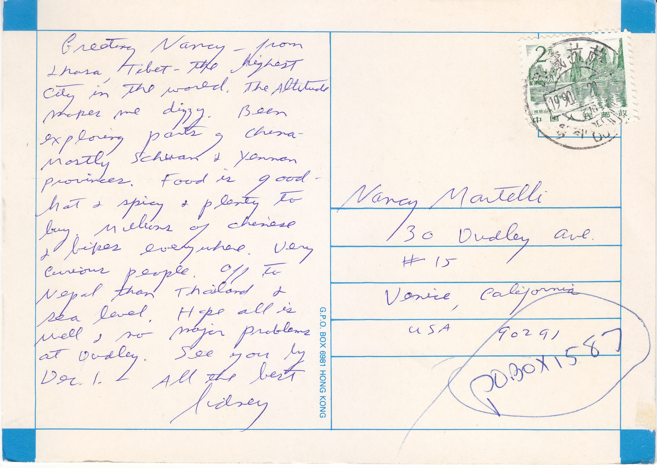 POSTCARD #182 The Potala Winter Palace of the Dalai Lama, Lhasa, Tibet. G.P.O., Box 6981, Hong Kong. 7" x 5" VG