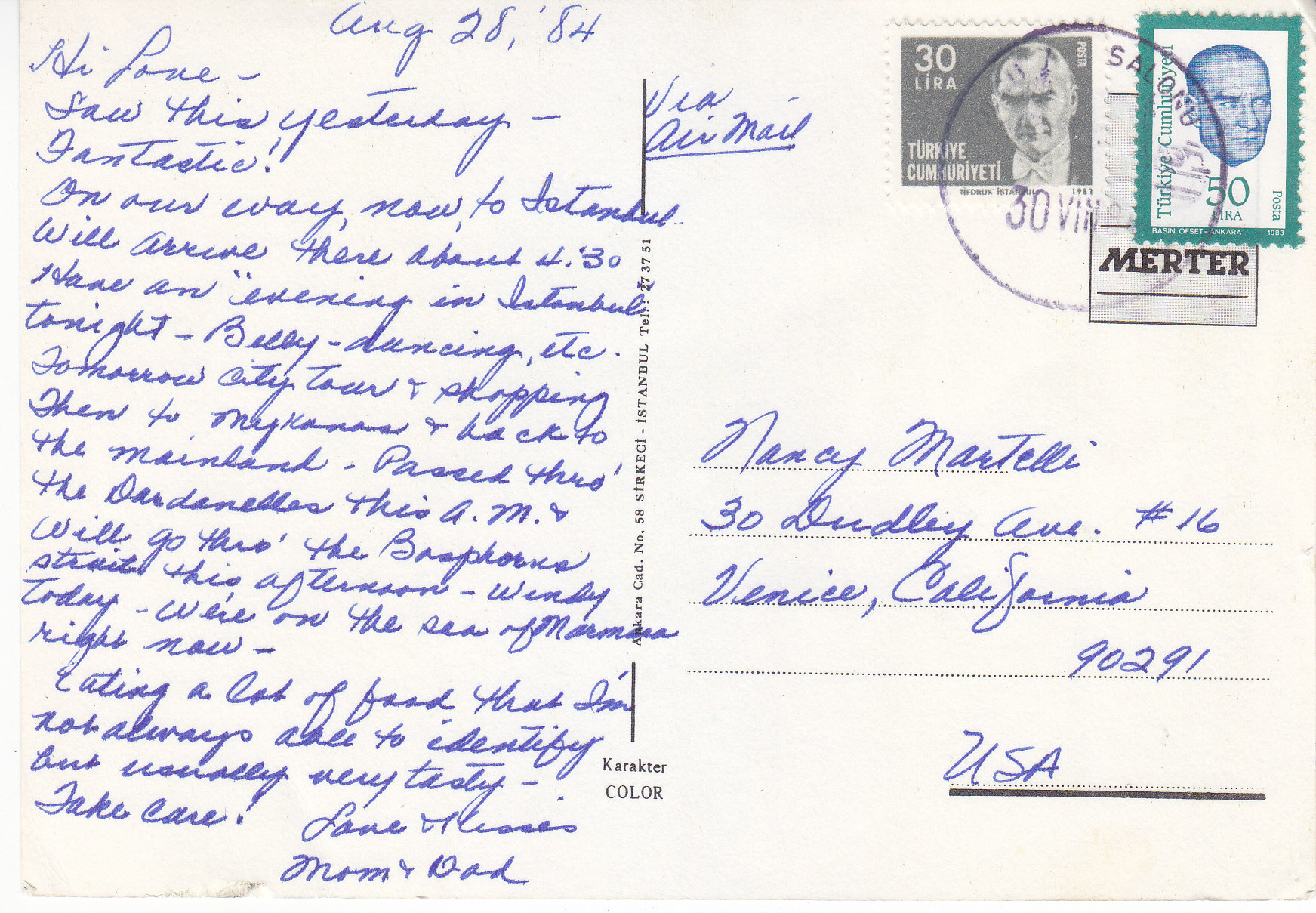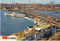 POSTCARD #117 Galata Bridge, New Mosque and Suleymaniye, Istanbul [Turkey]. 114. Her Hakki Mahfuzour. Keskin Color. Kartpostalcilik Limited Şirkiti. 49. Ankara Caddesi, No. 98, Istanbul Tel.: 27 34 06. Güzel Sanatlar. Keskin Color Ltd. Şti. Matabaasi. 6" x 4" EXC