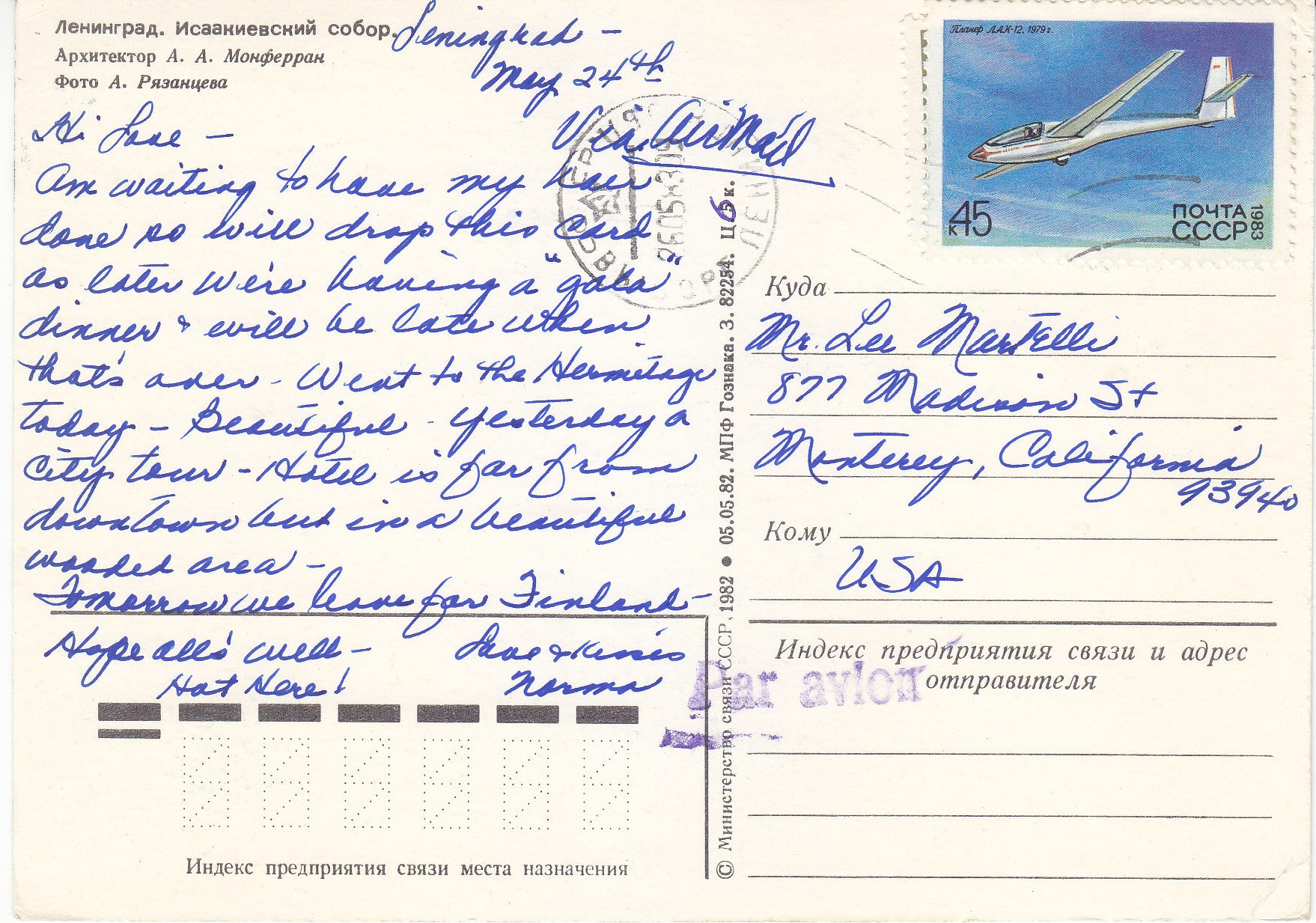 POSTCARD #237 Saint Isaac's Cathedral, Leningrad [Russia]. [All printed info is in Russian]. 5.75" x 4" VG