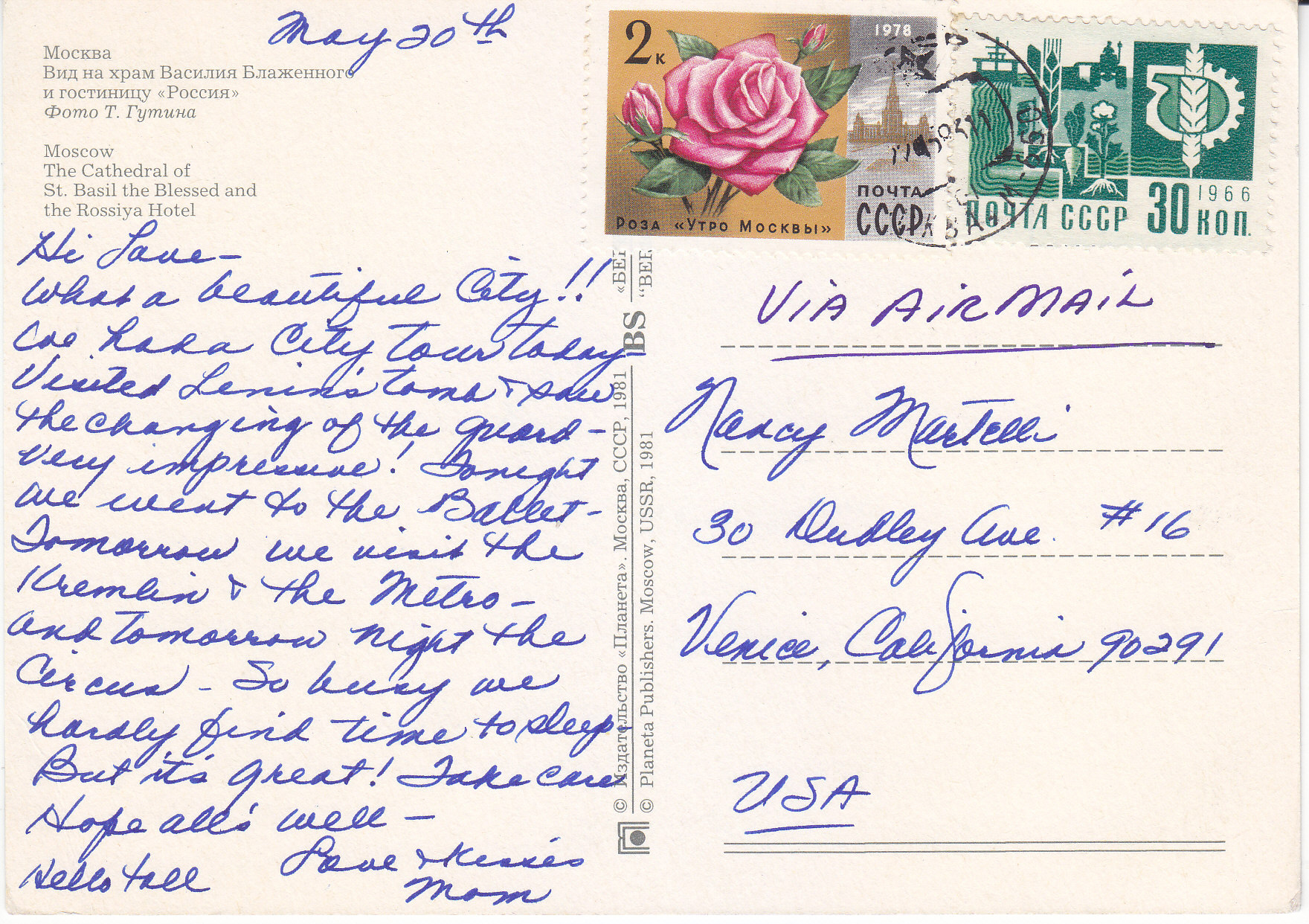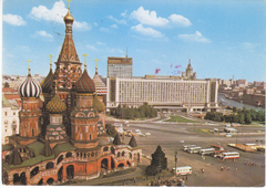 POSTCARD #240 Cathedral of St. Basil the Blessed and the Rossiya Hotel. Moscow [Russia]. Planeta Publishers, Moscow, USSR, 1981. [All other printed info is in Russian]. 5.75" x 4" VG