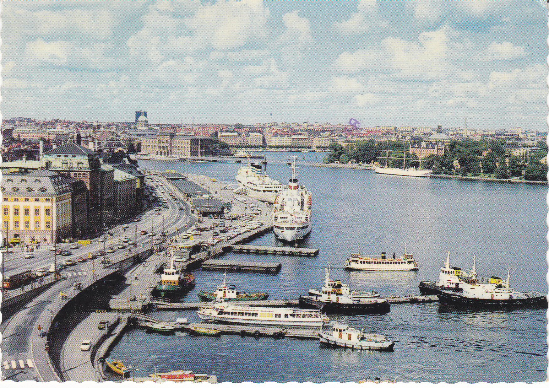 POSTCARD #269 Utsikt från Slussen över Skeppsbron [View from Slussen over Skeppsbron], Stockholm [Sweden]. 130/482 6565-6. Färgfoto: Giovanni Trimboli. Grako. 5.75" x 4" VG