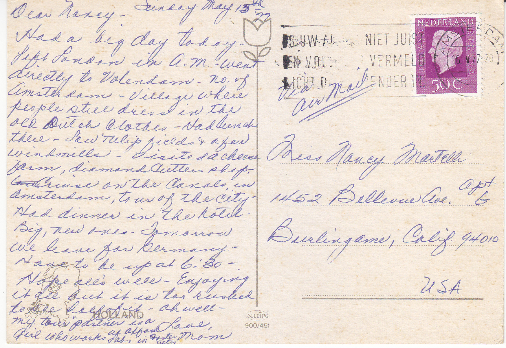 POSTCARD #278 Holland Souvenir. Holland [Netherlands]. Sleding. 900/451. 5.75" x 4" VG