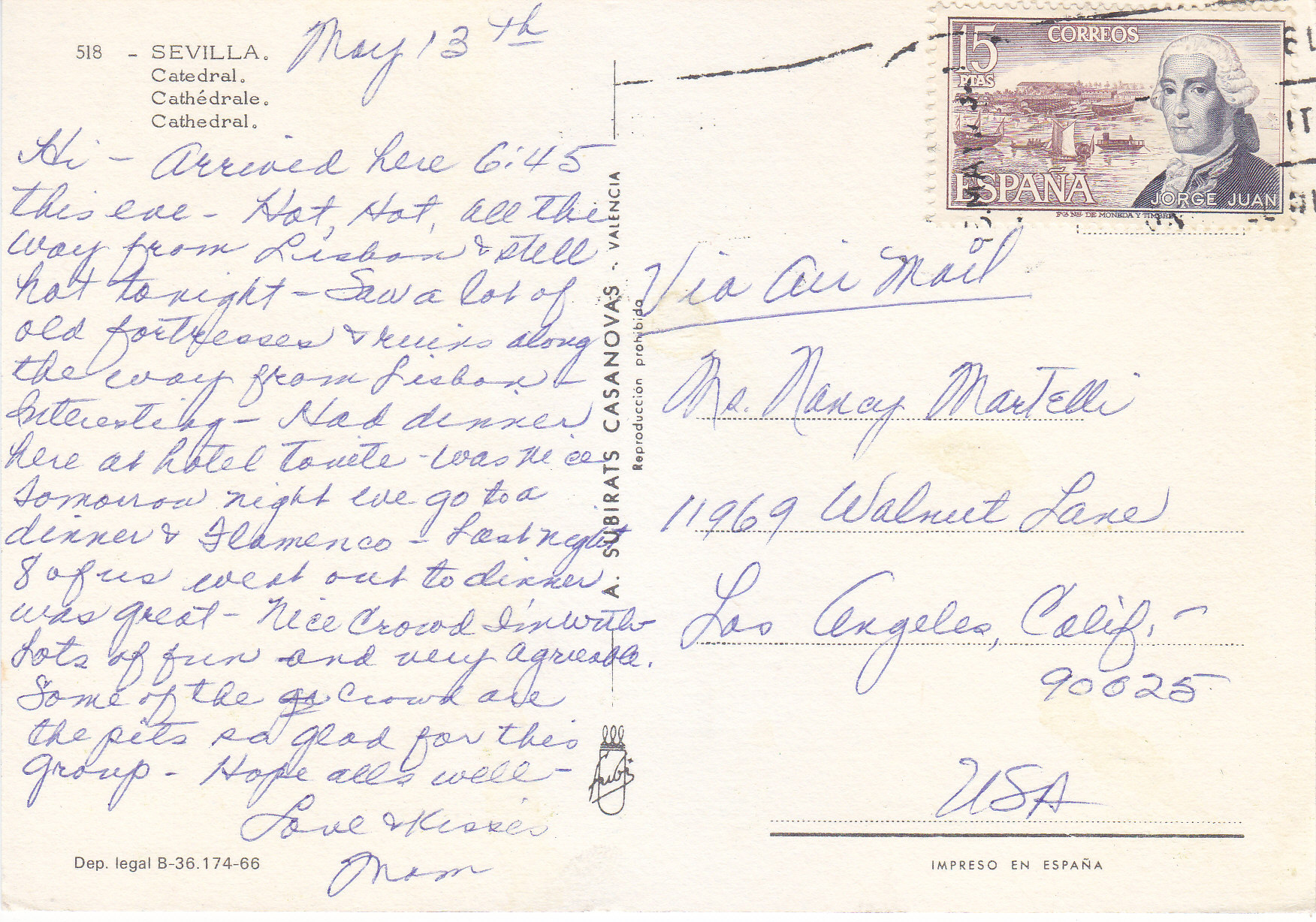 POSTCARD #284 Cathedral, Sevilla [Spain]. 518. Dep. legal B-36. 174-66. A. Subirats Casanovas, Valencia [Spain]. Reproducción prohibida. Impreso en España. 5.75" x 4" EXC