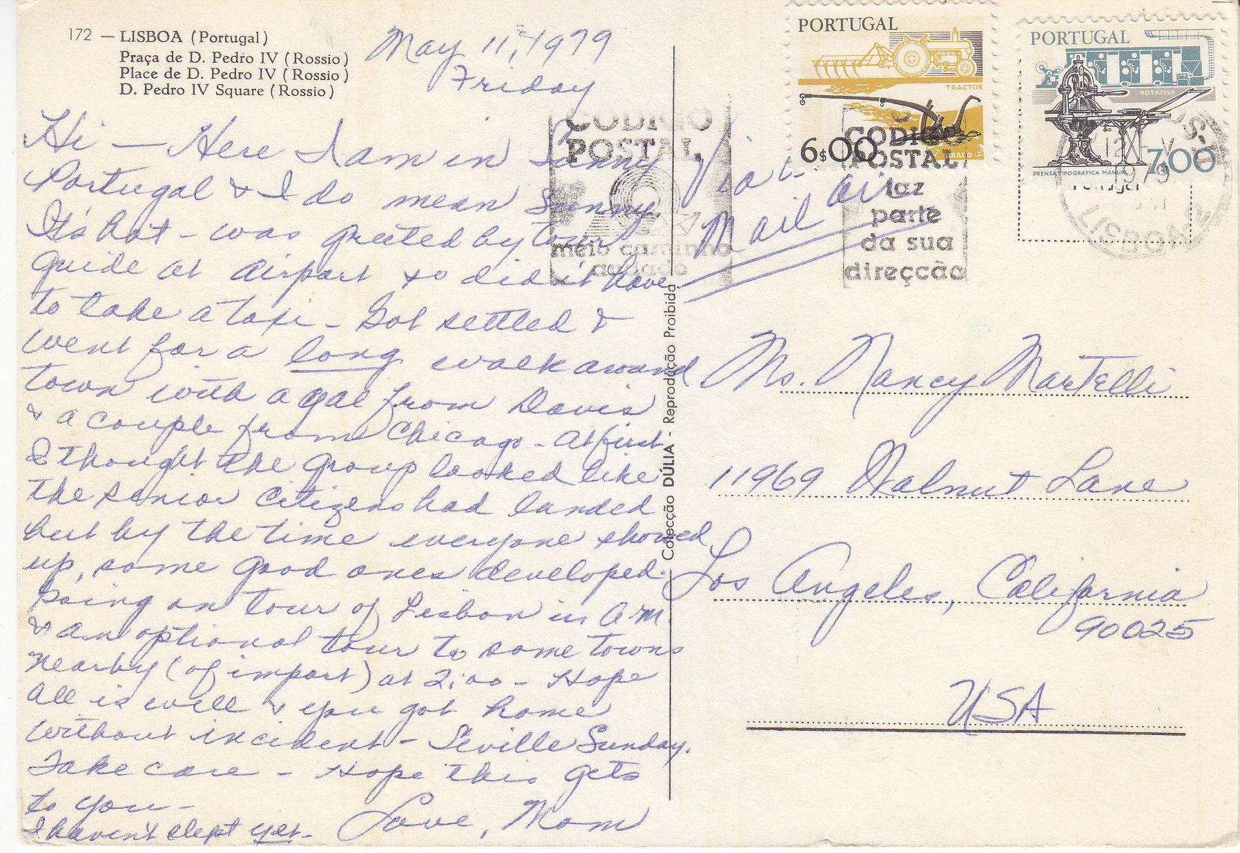 POSTCARD #286 Lisboa [Lisbon, Portugal]. 172. D. Pedro IV Square, Rossio. Coleção Sulia. Reprodução proibida. 6" x 4" VG