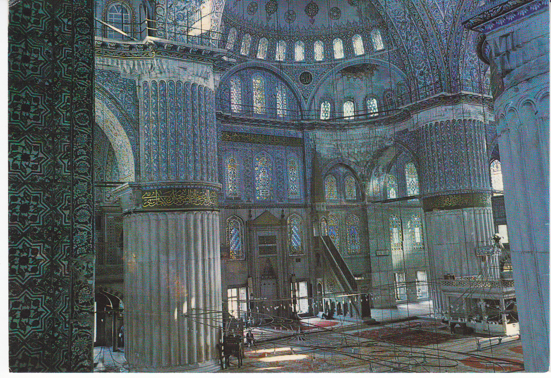 POSTCARD #326 The Blue Mosque, interior, Istanbul ve Şaheserleri [Turkey]. Her Hakki Mahfuzour. Keskin Color. Kartpostalcilik Limited Şirkiti. 49. Ankara Caddesi, No. 98, Istanbul Tel.: 27 34 06. Güzel Sanatlar. Keskin Color Ltd. Şti. Matabaasi. 6" x 4" VG