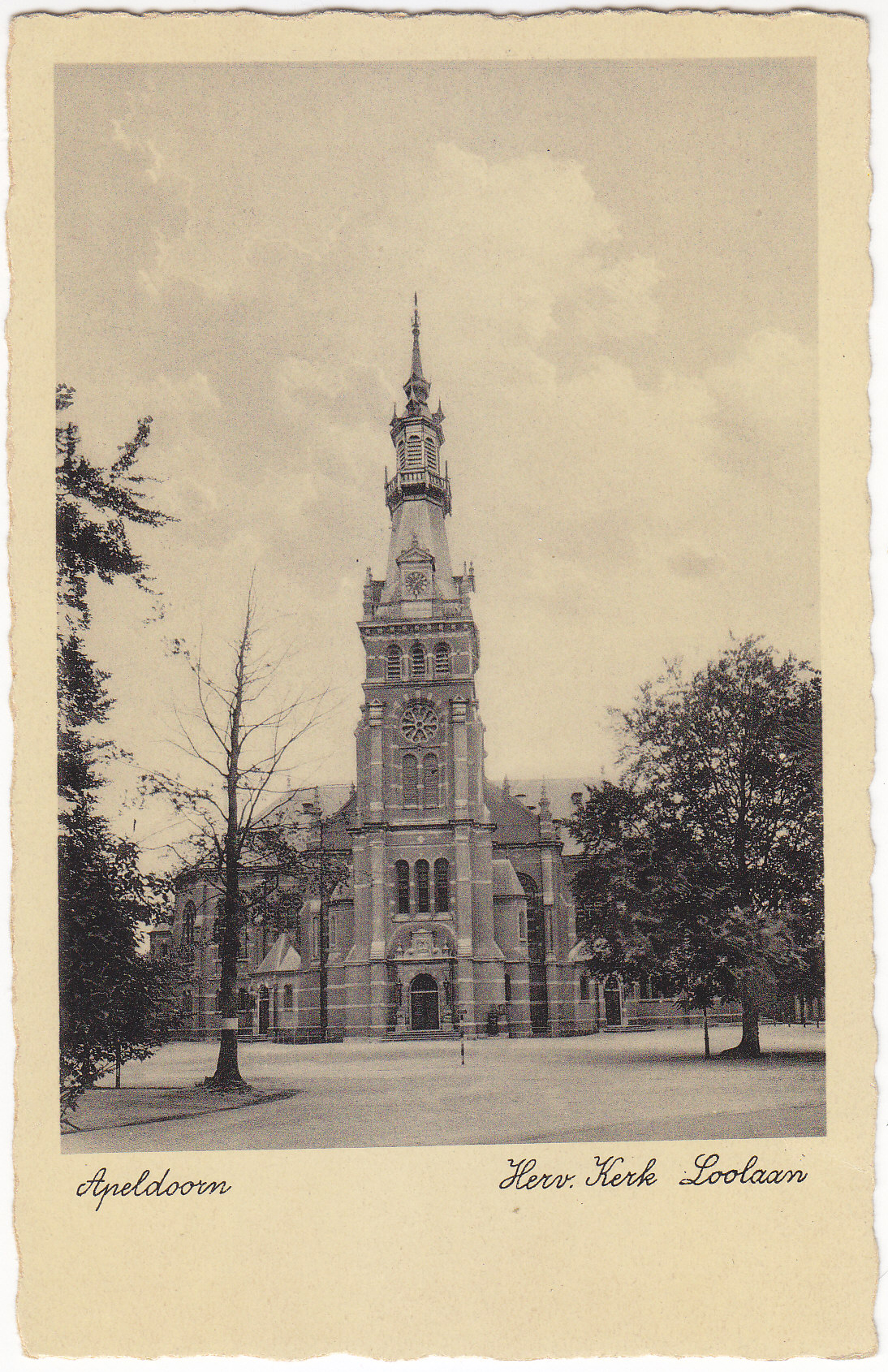 POSTCARD #383 Herv. Kerk, Loolaan [Reformed Church on Loolaan Street, Apeldoorn, Netherlands]. Uitg. Boekh. W. de Wekker, Apeldoorn. W&S H. 33Ri. 3.5" x 5.5" EXC