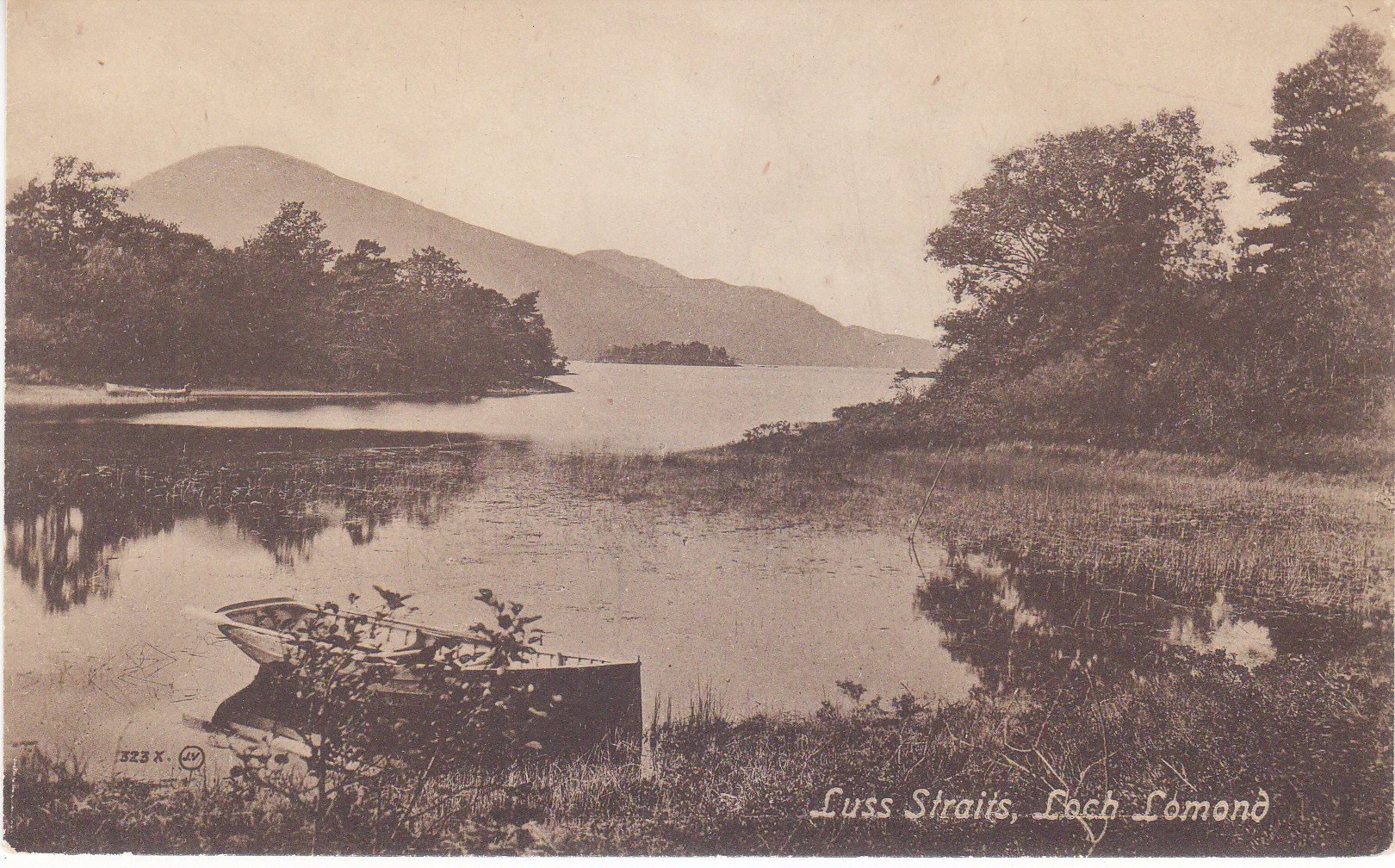 POSTCARD #389 Luss Straits, Loch Lomond [Scotland]. 323X. JV. Valentine's Series. British Manufacture. Valentine's Series is a guarantee of British Manufacture. 8-2. 5.5" x 3.5" EXC