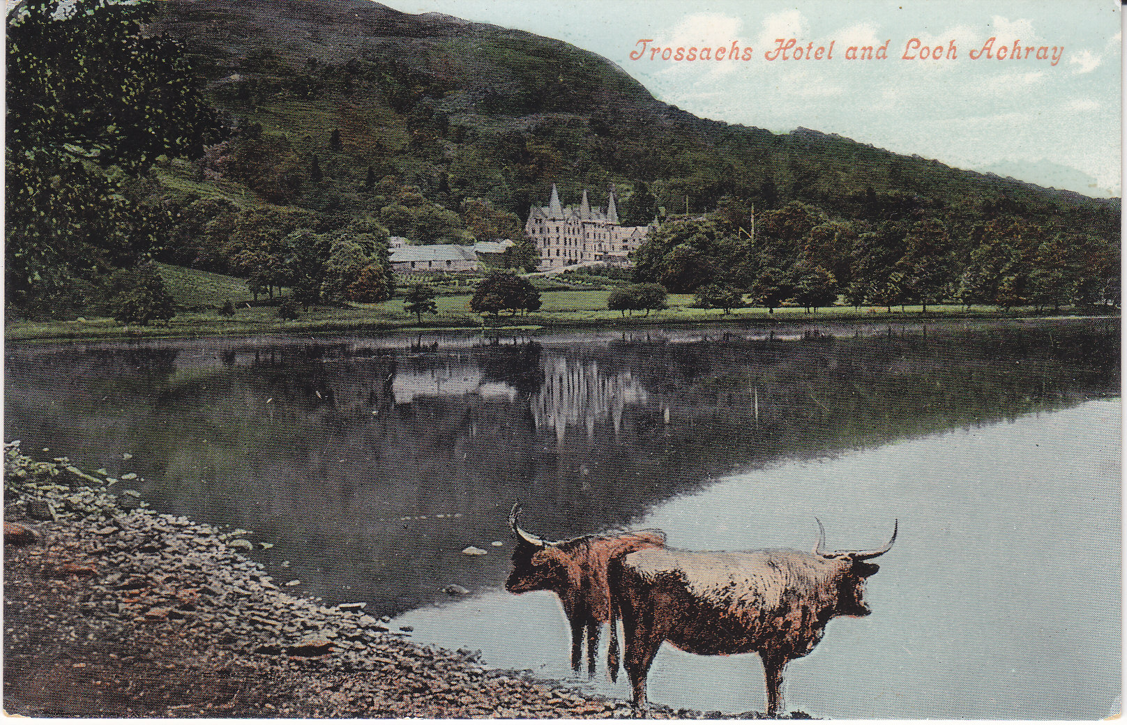 POSTCARD #394 Trossachs Hotel and Loch Achray [Stirling District, Scotland]. Valentine's Series. Souvenir Post Card. Printed in Great Britain. 5.5" x 3.5" VG