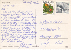 POSTCARD #429 Somewhere in Sweden. [No information in the message saying where. No markings on the card.] 5.5" x 3.5" VG