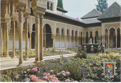 POSTCARD #285 Patio de los Leones [Patio of the Lions]. Alhambra, Granada [Spain]. Serie 45, n.° 802. A. Zerkowitz Fotógrafo. Tel. 818 29 33, Barcelona [Spain]. Prohibida la reproducción. Deposito legal B. 31.567.1974. 5.75" x 4" VG