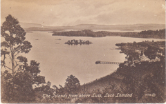POSTCARD #390 The Islands from above Luss, Loch Lomond [Scotland]. 01228. JV. Valentine's Series. British Manufacture. Valentine's Series is a guarantee of British Manufacture. 8-2. 5.5" x 3.5" VG