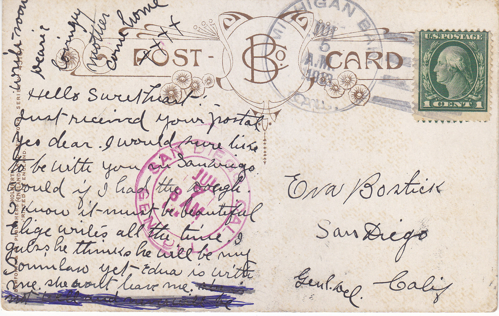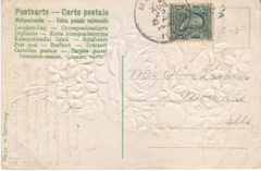 POSTCARD #396 Made in Germany. [The words "post card" are written in various languages on the reverse. Message is in faded pencil.] 3.5" x 5.5" FR