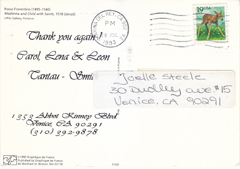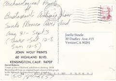 POSTCARD #201 Barbara Buer Paintings. Printed information obscured by mailing labels on message side of card. 4.25" x 5.75" EXC