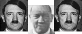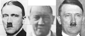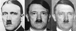 Comparison #2: Hitler in 1938 (left and right); unidentified man (center).