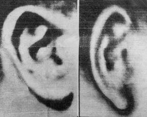 Comparison #5: Hitler's ear (left); film footage ear (right).
