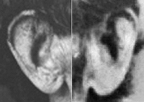 Ear of man in Kaplan photo (above).