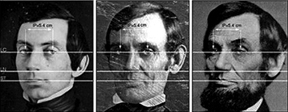 Measuring is a great way to confirm a match or rule one out. In the case of the Kaplan photo, measuring wasn't necessary at all, since a quick visual comparison of the mouth, nose shape, eye size, and ears, reveal that they are not even close matches to those of Lincoln. But it pays to measure anyway, especially if identifying someone in a particular photo is very important to you. This happens so often to people who are writing their family histories and want to be sure that the person they think is Uncle Lloyd is not his older brother Irving who resembles him so closely. Since a photo is often said to be worth a thousand words, getting that identification confirmed by measuring is always your best and most reliable choice.