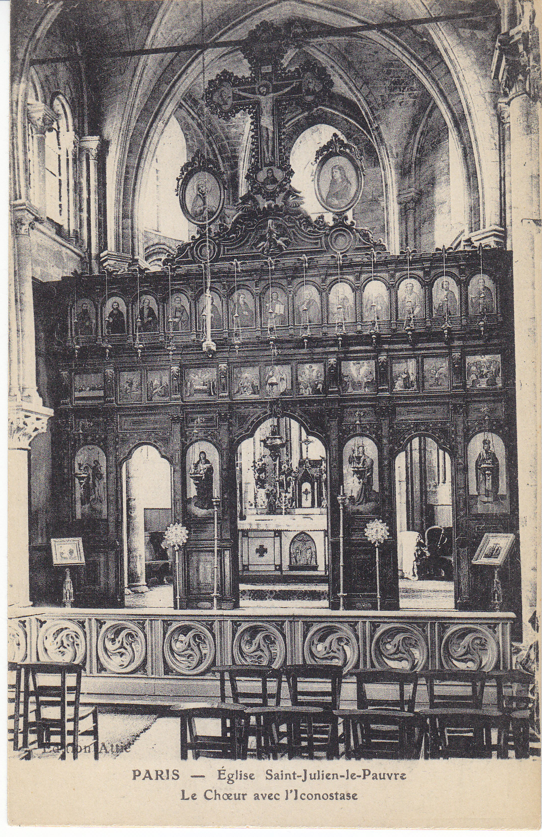 POSTCARD #019 Le Choeur avec l'Iconostase, Eglise Saint-Julien-le-Pauvre [The Choir with Iconography, Church of Saint Julien the Poor, Paris, France]. Imp. E. Le Deley, Paris. 3.5" x 5.5" EXC