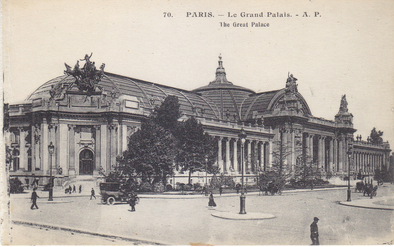 POSTCARD #021 Le Grand Palais [The Great Palace, Paris, France]. 70. A.P. E. Papeghin, 24 Rue des Petites-Ecuries, Paris. 5.5" x 3.5" EXC