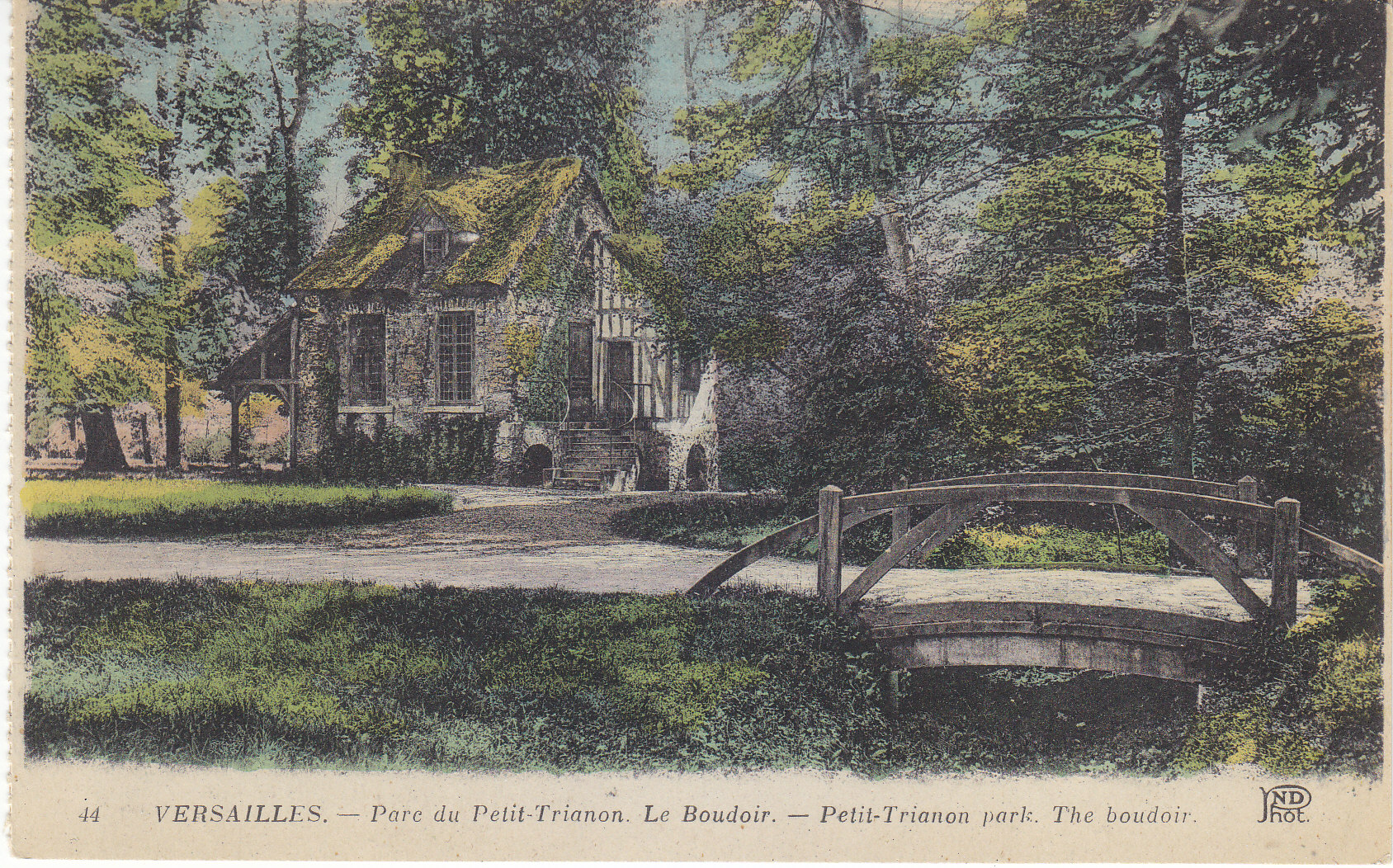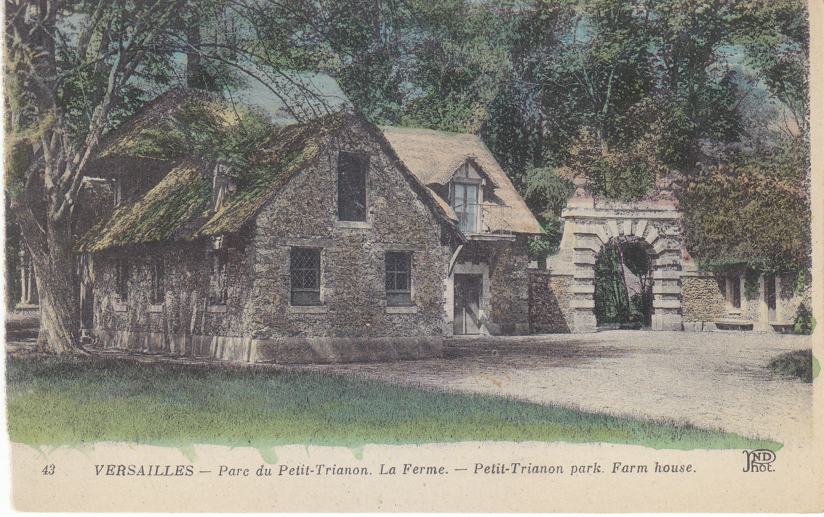 POSTCARD #026 Parc du Petit-Trianon, La Ferme [Petit-Trianon Park, Farm house, Versailles, France]. 43. Ancien Estab. Neurdein et Cie. Imp. Crete, Succ, Corbeil, Paris, 52 Av. de Breteuil, Paris. 5.5" x 3.5" VG