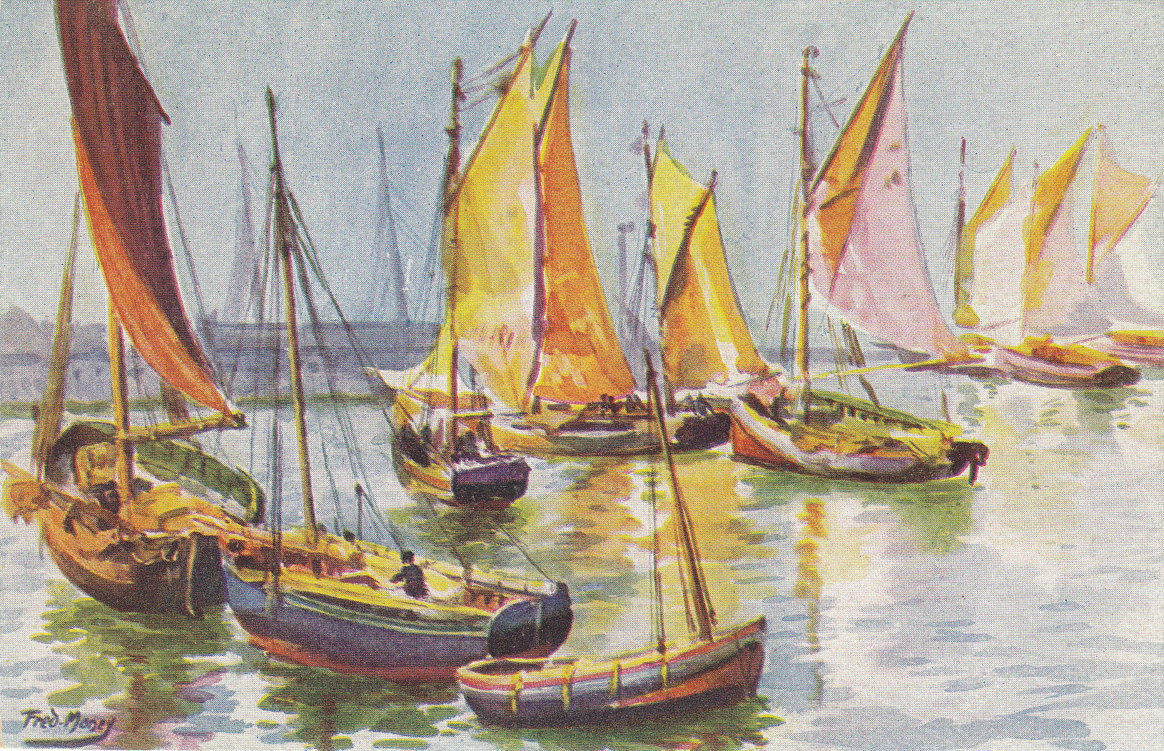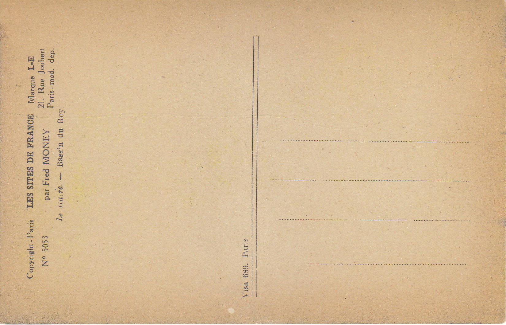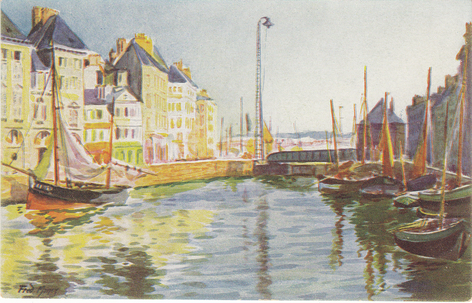 POSTCARD #030 Bassin du Roy, Le Havre [France]. Par Fred Money [artist]. Les Sites de France. Copyright Paris No. 5053. Marque L-E, 21 Rue Joubert, Paris, mod. dep. 5.5" x 3.5" EXC