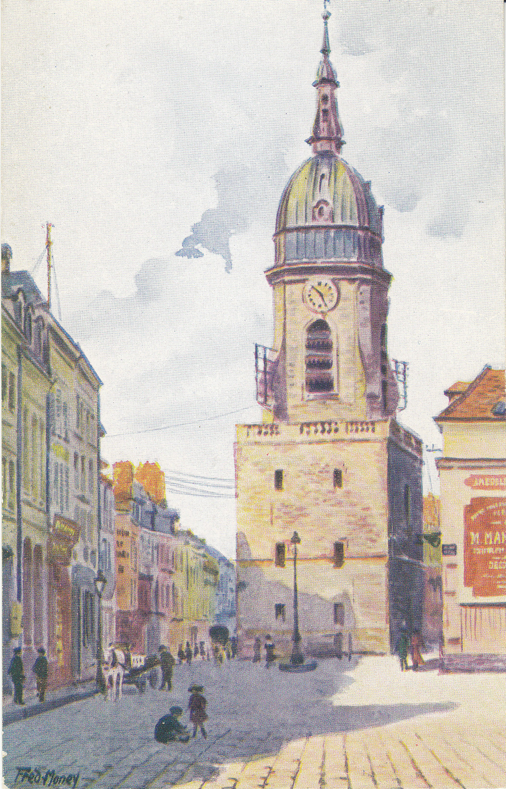 POSTCARD #033 Le Beffroi, Amiens [France]. Par Fred Money [artist]. Les Sites de France. Copyright Paris No. 5106. Marque L-E, 21 Rue Joubert, Paris, mod. dep. 3.5" x 5.5" EXC