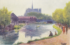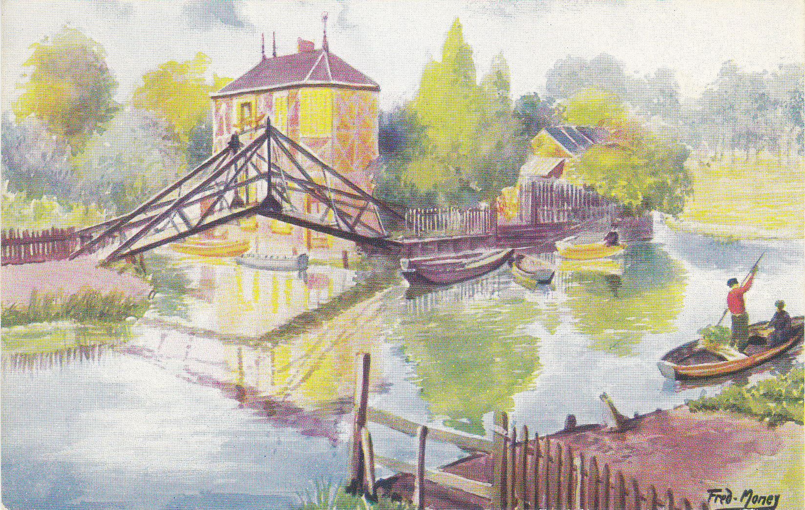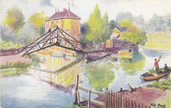 POSTCARD #036 Le Pont du Caugé, Amiens [Bridge of Caugé commune, Amiens, France]. Par Fred Money [artist]. Les Sites de France. Copyright Paris No. 5110. Marque L-E, 21 Rue Joubert, Paris, mod. dep. 3.5" x 5.5" EXC