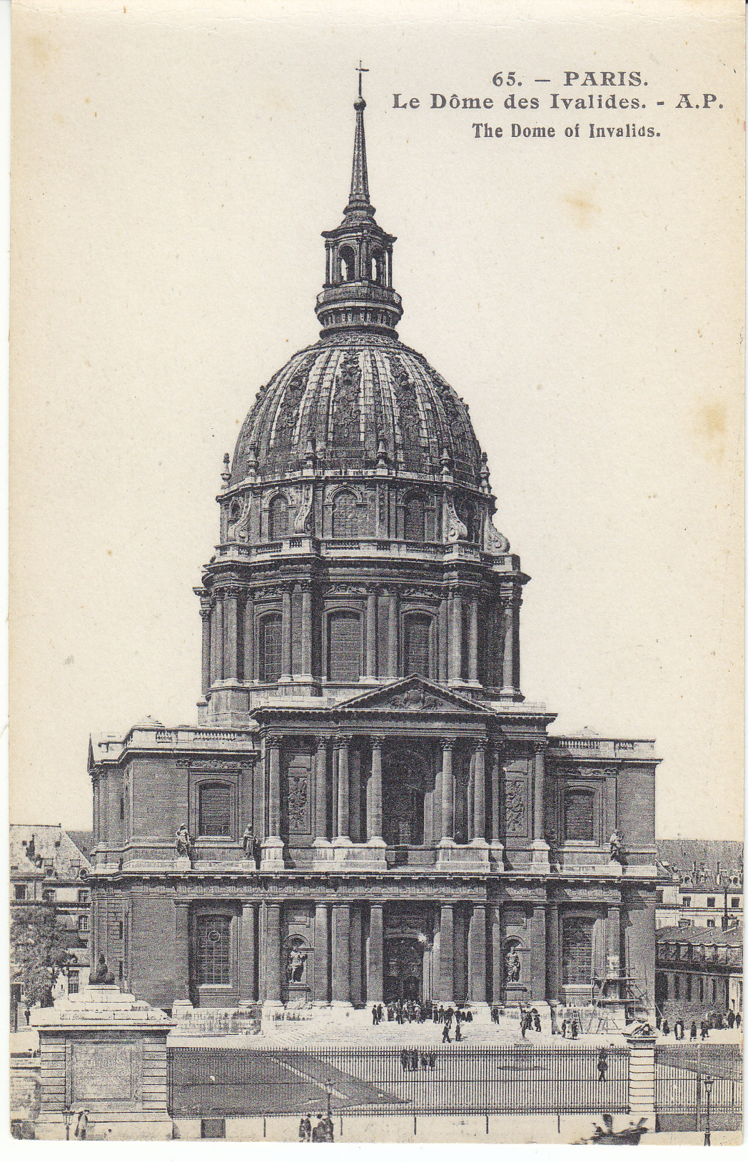 POSTCARD #040 Le Dome des Invalides [The Dome of Invalids, Paris, France]. 65. A.P. E. Papeghin, 24 Rue des Petites-Ecuries, Paris. 3.5" x 5.5" EXC