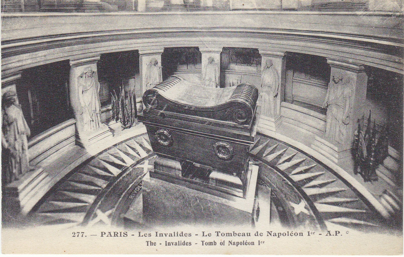 POSTCARD #043 Les Invalides-Le Tombeau de Napoleon I [The Invalides, Tomb of Napoleon I, Paris, France]. 277. A.P. E. Papeghin, 24 Rue des Petites-Ecuries, Paris. 5.5" x 3.5" EXC
