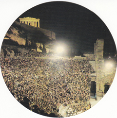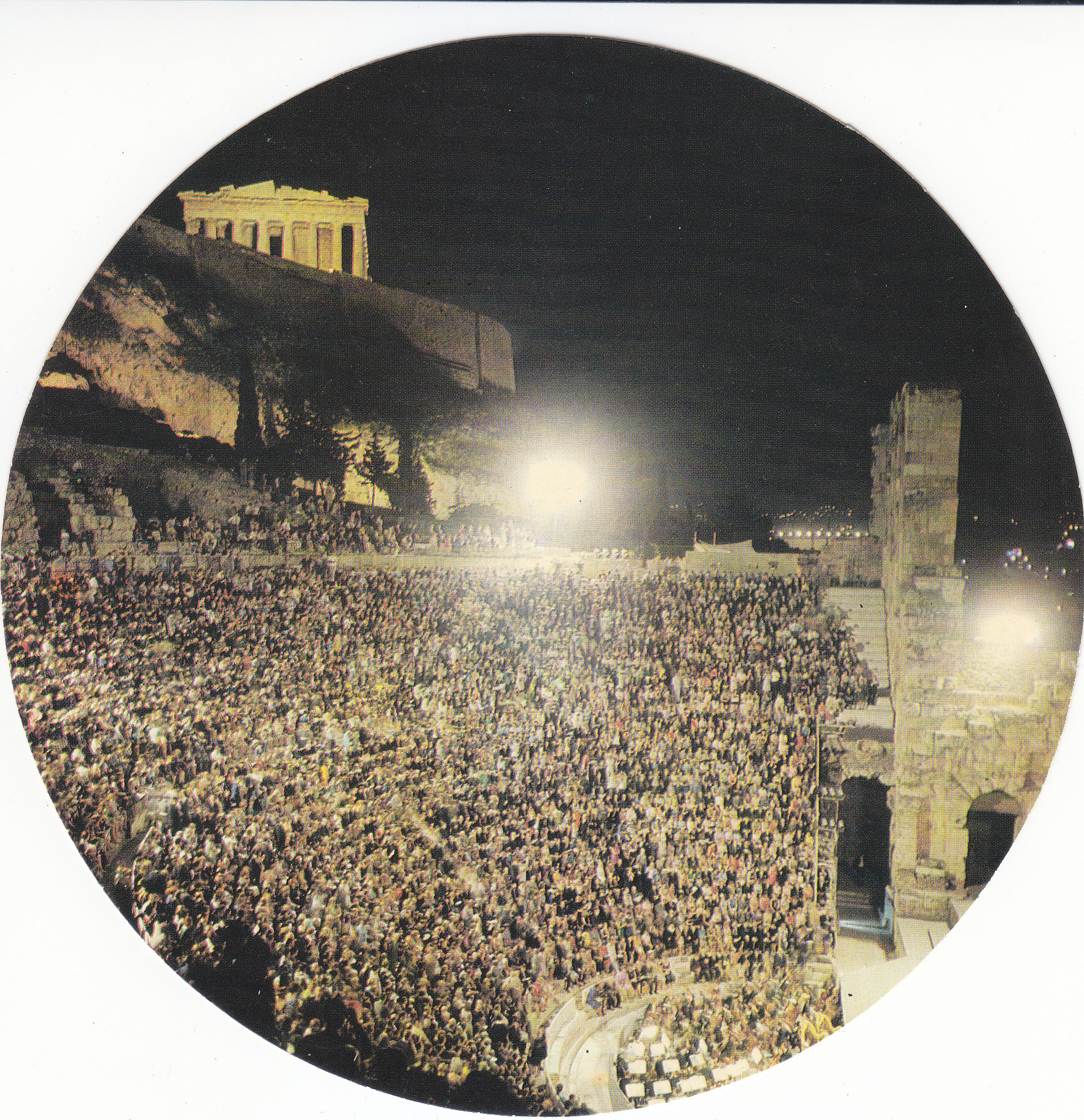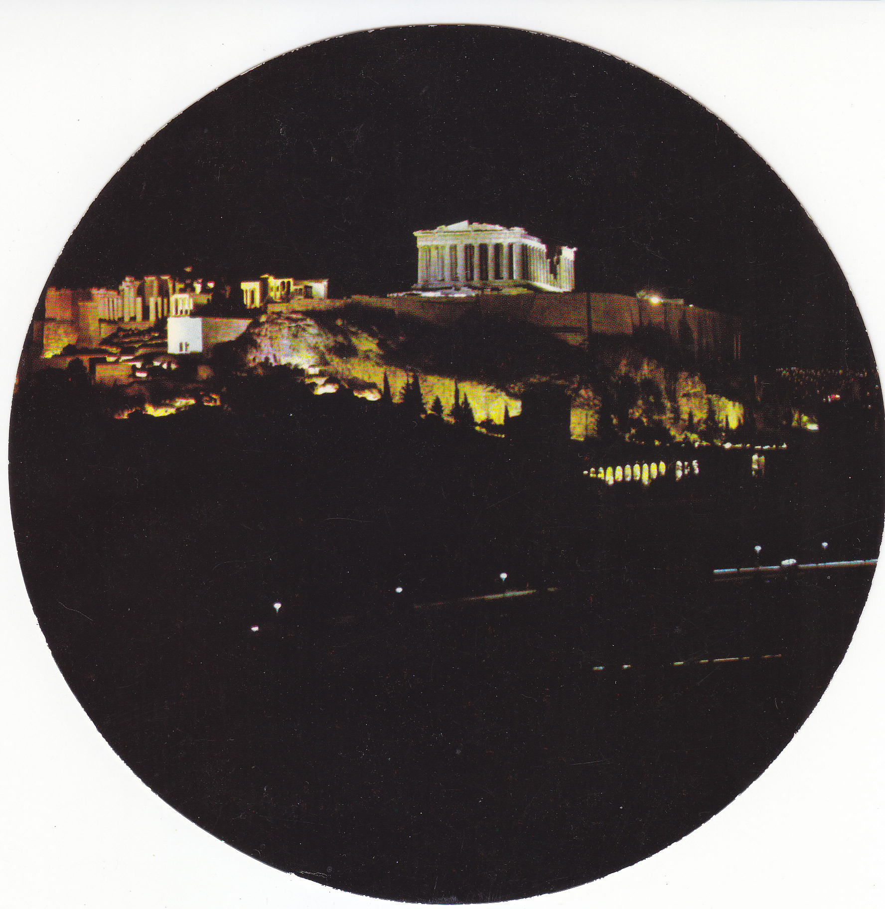 POSTCARD #179 Athens [Greece]. The Illuminated Acroplis. 44. [Address in Greek.]. 6" diameter. VG