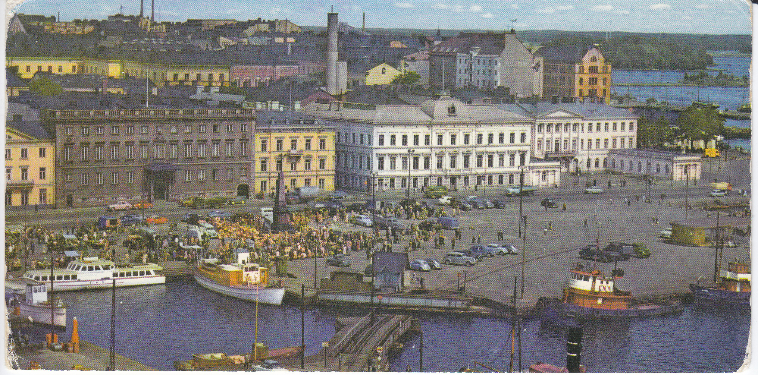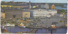 POSTCARD #191 A Busy Market Day. Helsinki [Finland]. Panomascope, Kuvataide Bildkonst. Printed in Finland. 479/1. 8.25" x 4" FR/GD