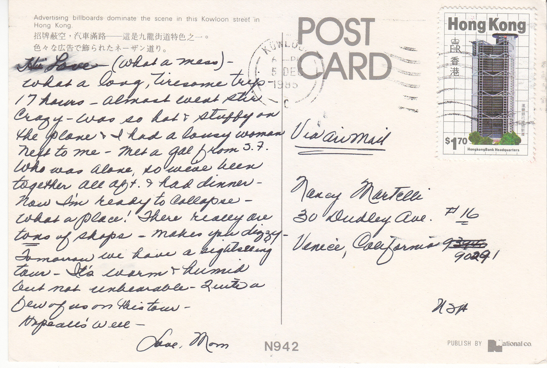 POSTCARD #227 Kowloon Street, Hong Kong. N942. Publish by National Co. 5.75" x 4" EXC