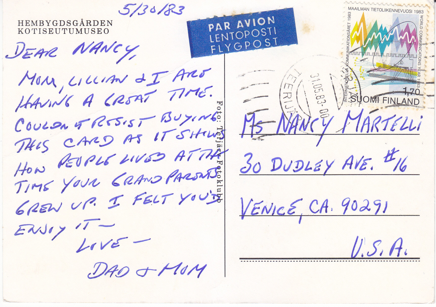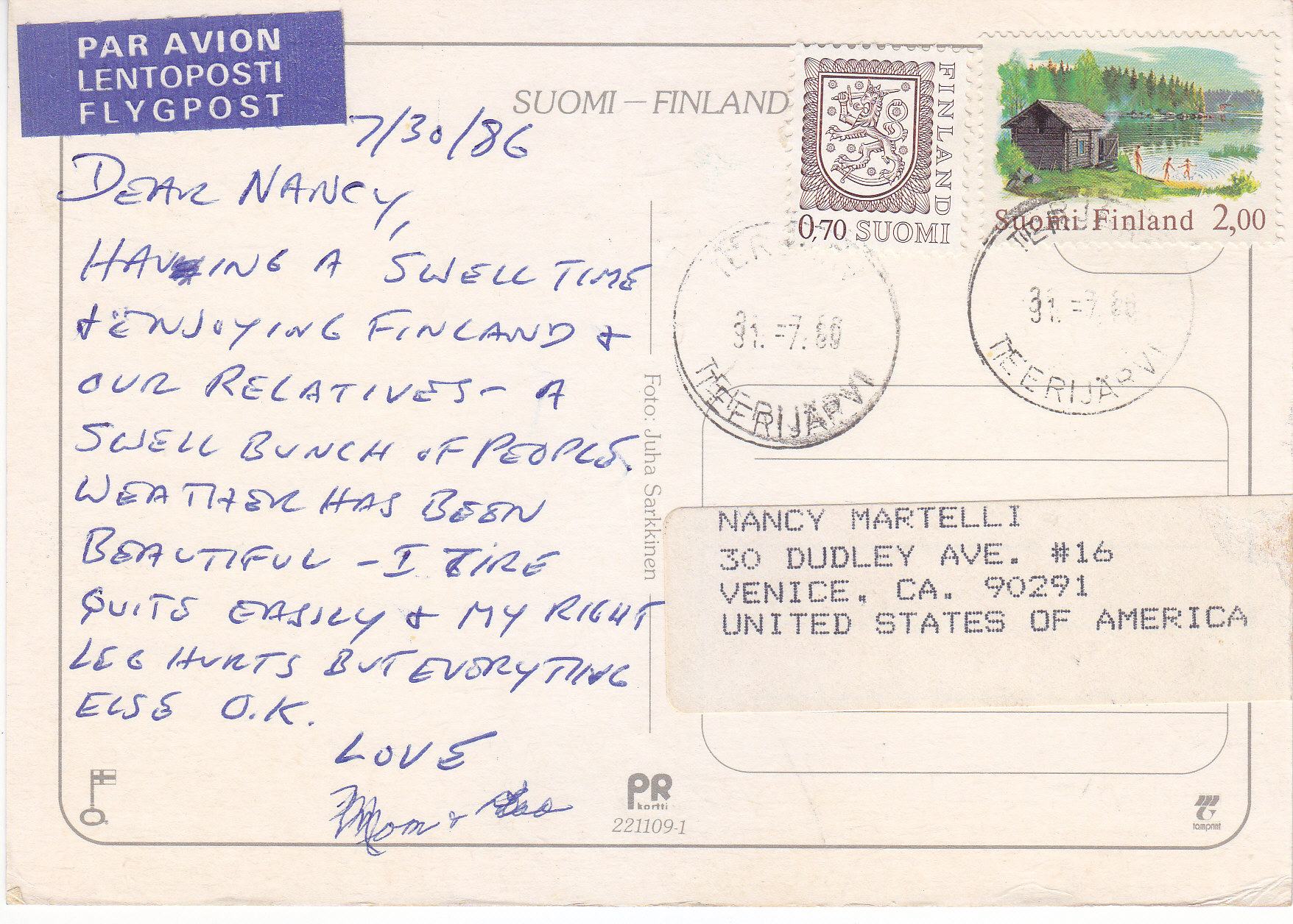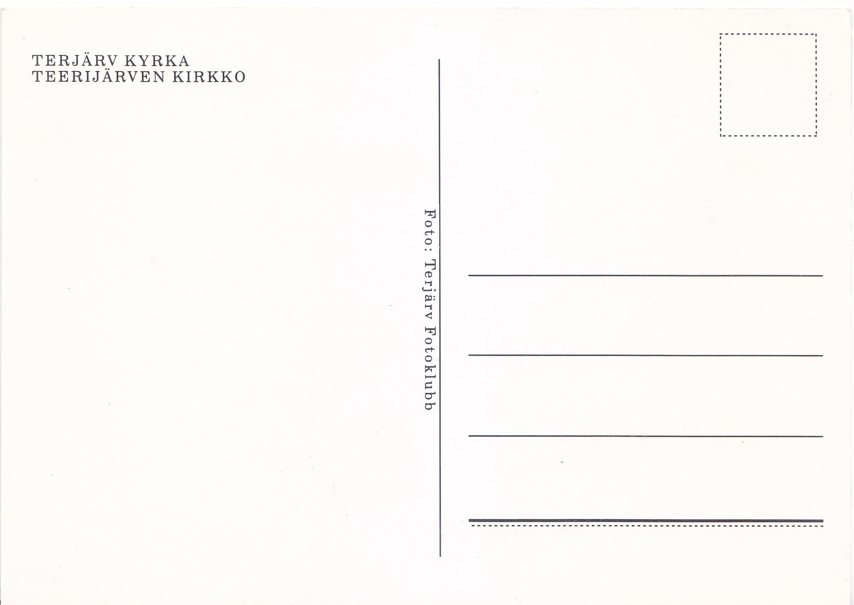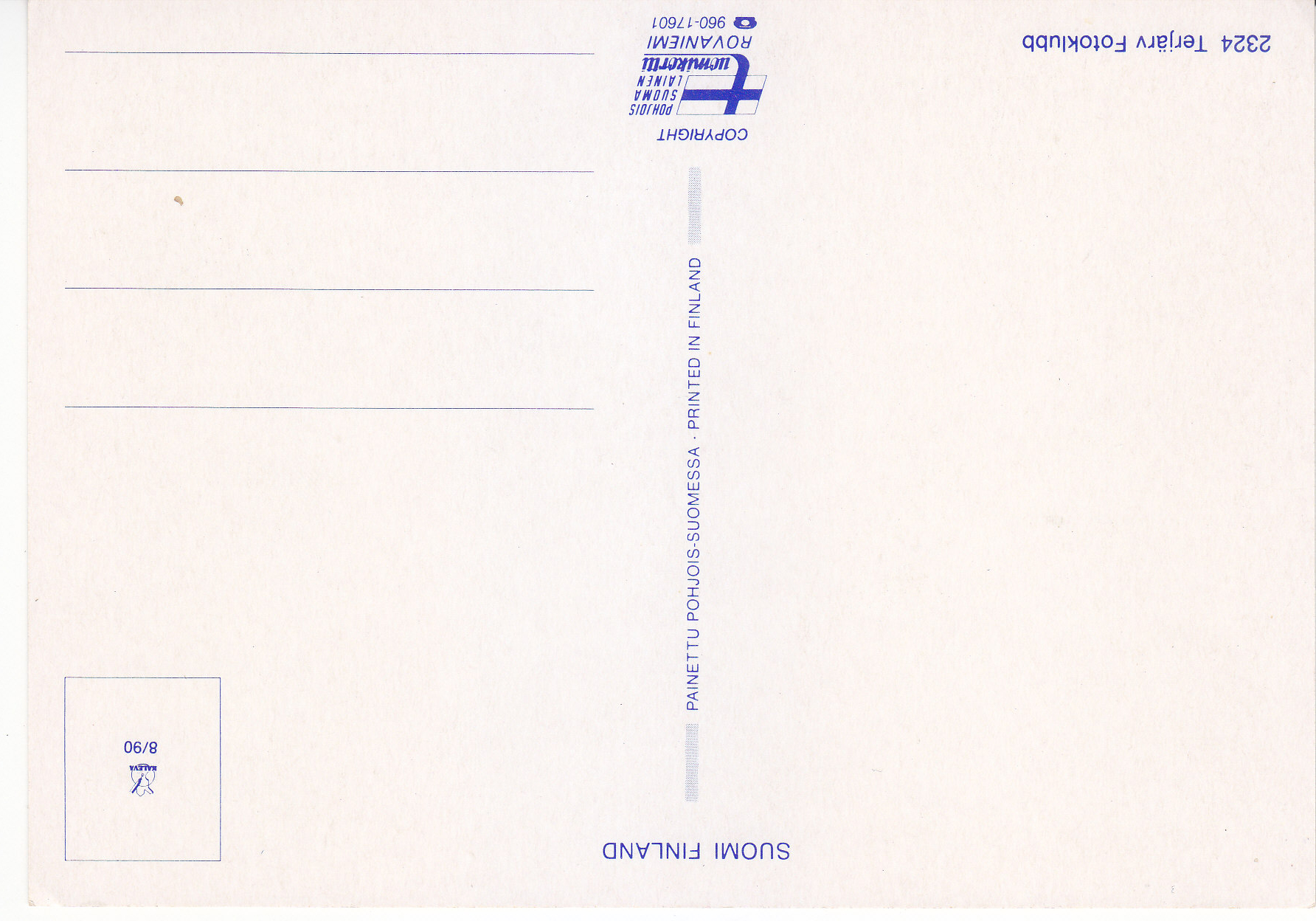 POSTCARD #260 Terjärv [Suomi/Finland]. 2324.Terjärv Fotoklubb. Copyright Pohjois Suoma Lainen. Tuomikortti, Rovaniemi. 960-17601. Painettu Pohjois-Suomessa. Printed in Finland. 5.75" x 4" EXC
