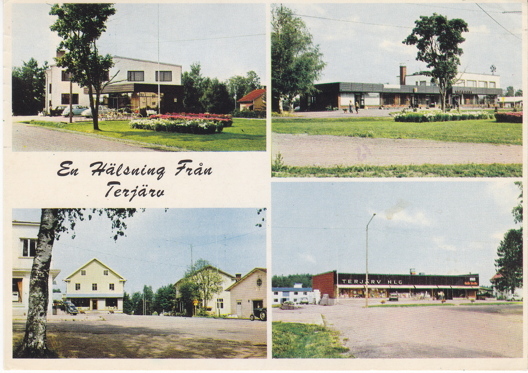 POSTCARD #258 En Hälsning Från Terjärv [Greetings from Terjärv, Suomi/Finland]. Views from town center. Foto: K. Byström. MV vaasa p.212769. Painettu Suomessa. 5.75" x 4" EXC