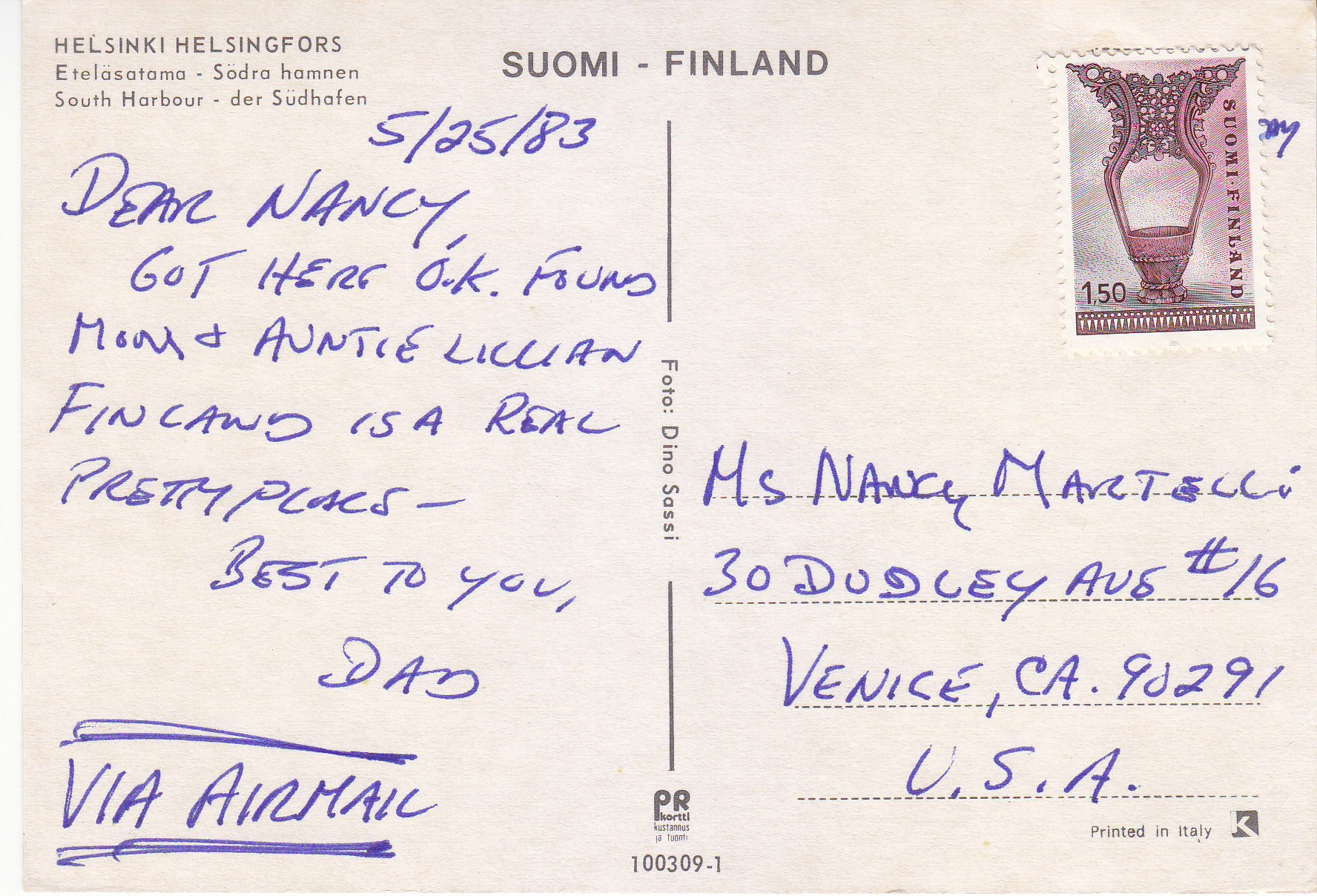POSTCARD #262 South Harbor, Helsinki/Helsingfors [Suomi-Finland]. 100309-1. Foto: Dino Sassi. PR Kortti Kustannus ja tuonti. Printed in Italy. 5.75" x 4" EXC