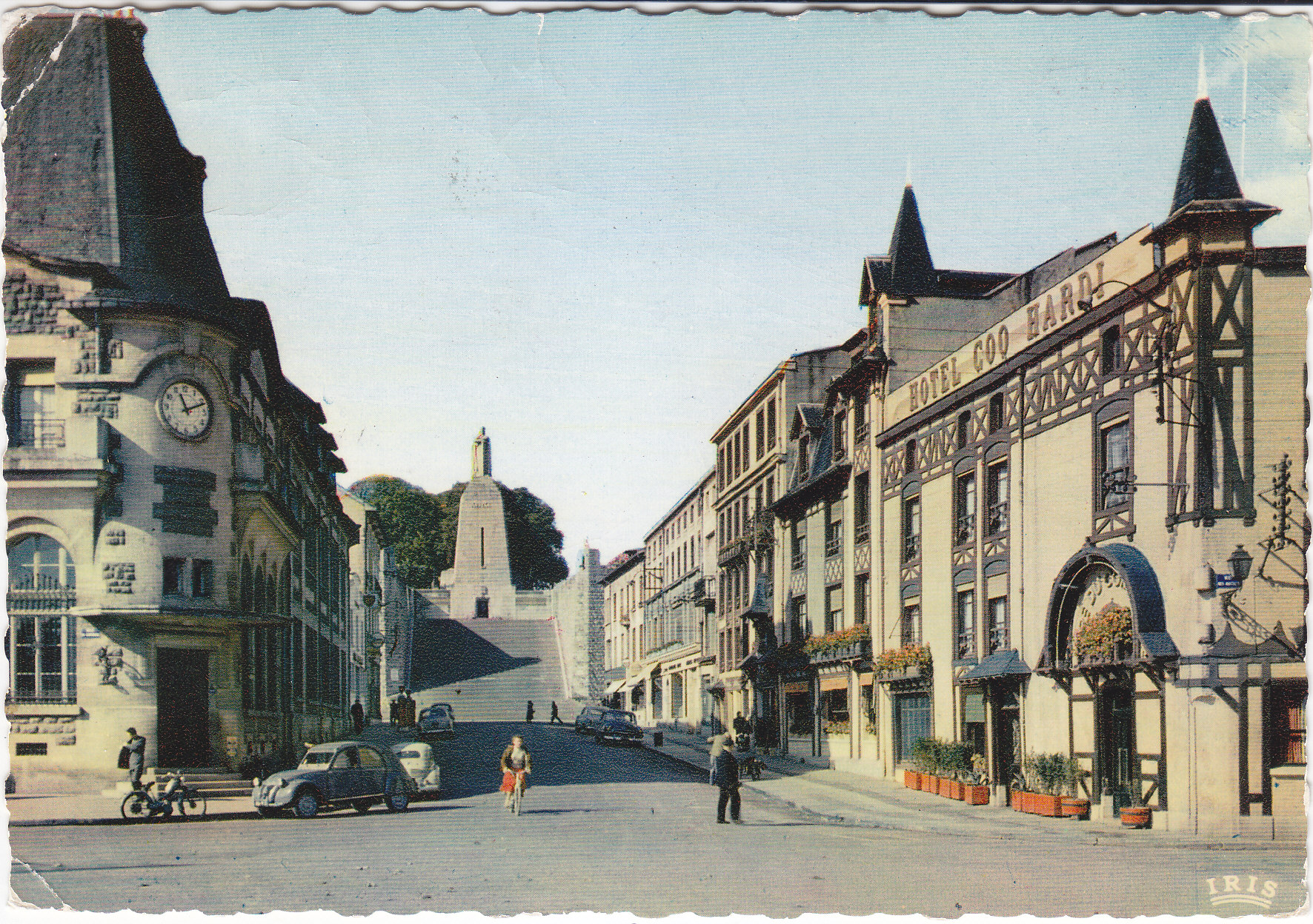 POSTCARD #349 Avenue et Monument de la Victoire (Arch. D.P.L.G. M. Chesnay), Verdun, Meuse, France]. 55.545.13. Copyright by S.P.A.D.E.M., Paris-II. Mexichrome. Coleurs naturelles. Editions La Cigogne. 10, rue de Talleyrand, Reims [Marne, France]. (Exclusivité de fabrication Andre Leconte). The surface of the photo is crackled when viewed at an angle under light. 6" x 4" FR/GD