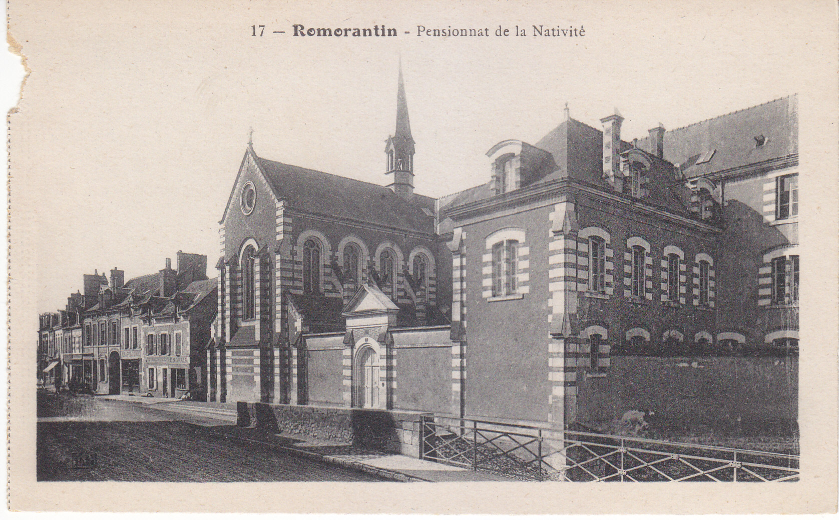 POSTCARD #358 Romorantin Pensionnat de la Nativité [Romorantin Nativity Boarding School, Lanthenay] Loir-et-Cher [France]. Imp. Catala Freres, Paris [France]. Has a chunk missing from the left border, but is otherwise in excellent condition. 5.5" x 3.6" FR