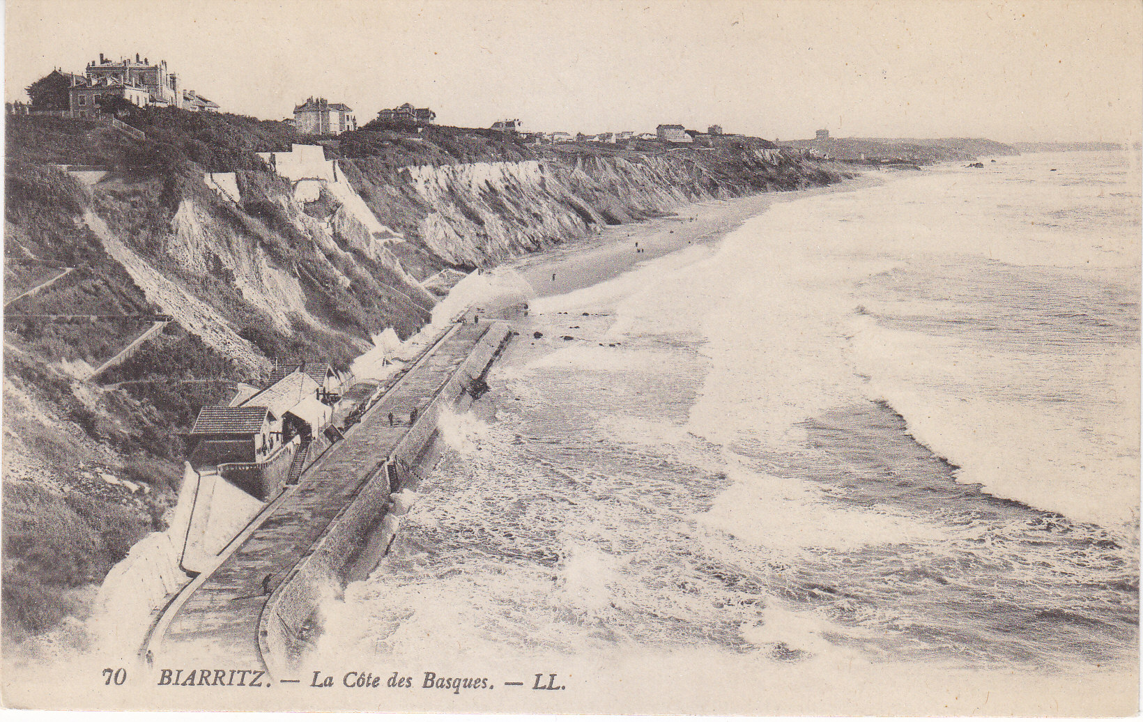 POSTCARD #380 La Côte des Basques [The Basque Coast, Biarritz, France]. 70. L.L. Levy Fils, Paris. 5.5" x 3.5" EXC