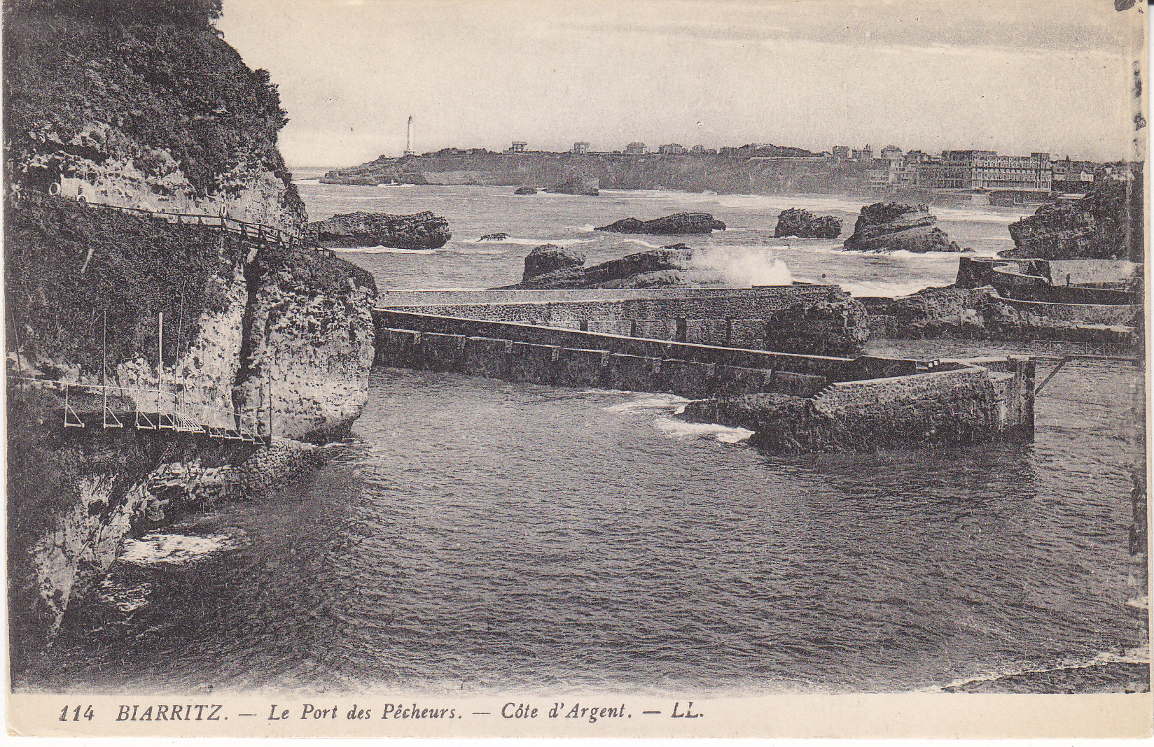POSTCARD #381 La Port des Pecheurs, Côte d'Argent [The Fishing Harbor, Gold Coast, Biarritz, France]. 114. L.L. Levy Fils, Paris. 5.5" x 3.5" EXC