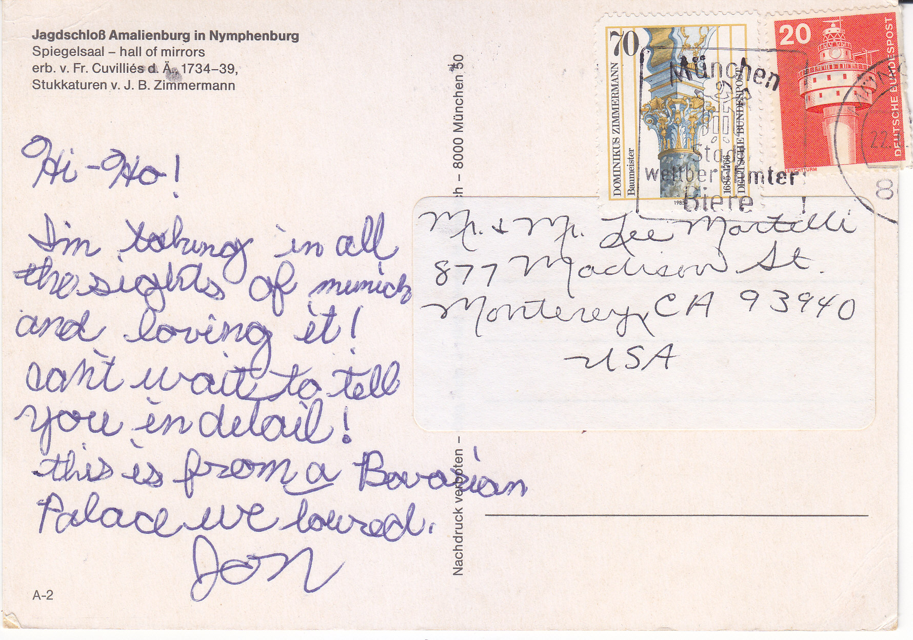 POSTCARD #415 Spiegelsaal [Hall of Mirrors], Jagdschloss Amalienburg in Nymphenburg [Hunting Lodge at Nymphenburg Palace Park, Munich, Germany]. A-2. Nachdruck verboten. Verlag M. Herpich, 8000 München [Munich] 50. 5.75" x 4" VG
