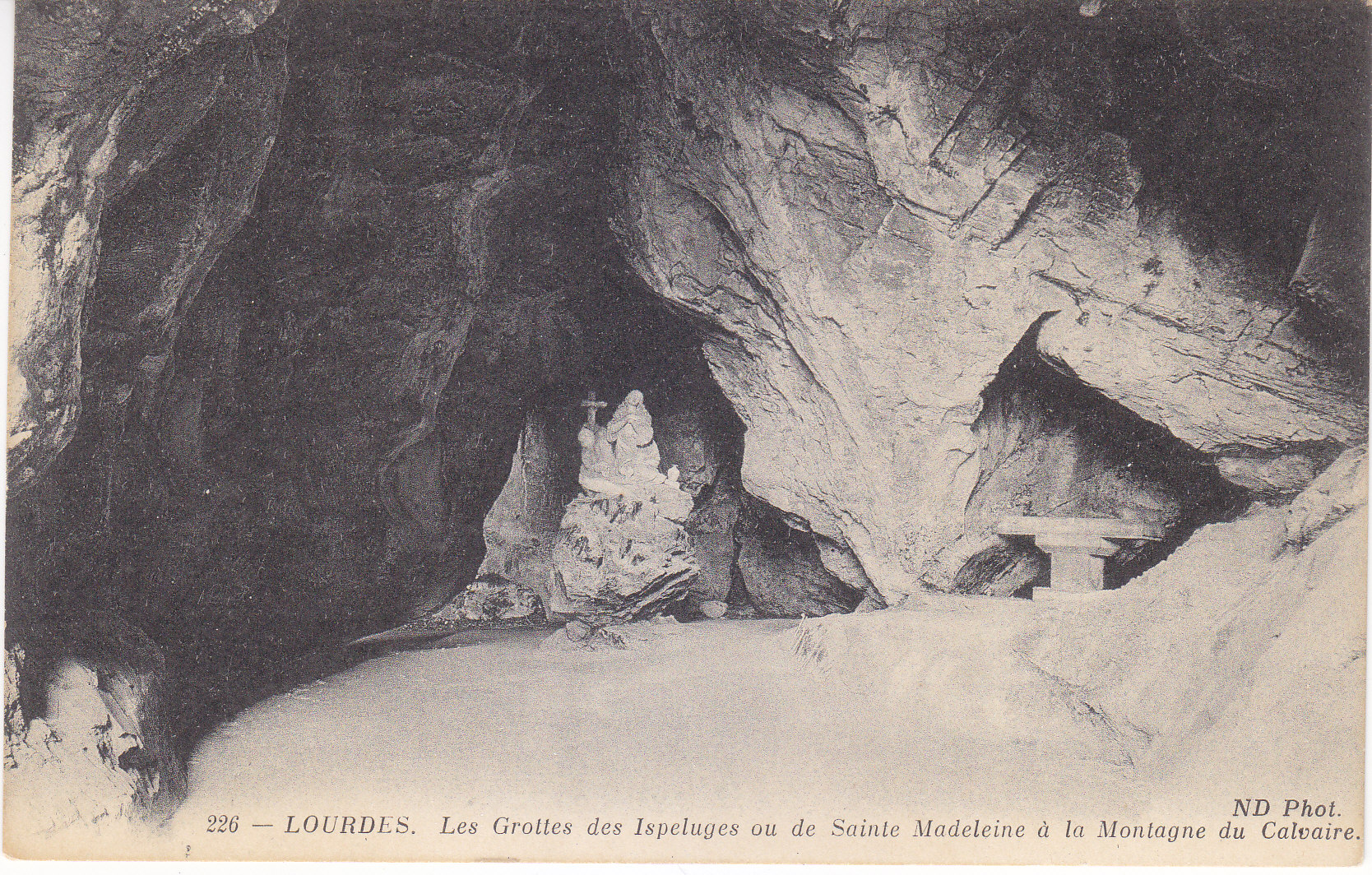 POSTCARD #434 Les Grottes des Ispéluges ou de Sainte Madeleine à la Montagne du Calvaire [The Caves of the Espélugues Abyss or Saint Madeleine at Calvary Mountain]. Lourdes, Les Hautes-Pyrénées, France. 226. Nd Phot. 5.5" x 3.5" EXC
