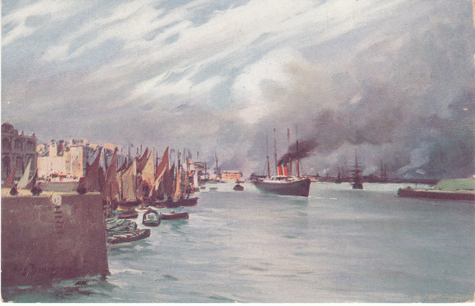 POSTCARD #440 La Sortie des Jetees [The Exit from the Piers], Dieppe, France. 70. L.L. Modèle Déposé. Lévy Fils et Cie, Paris [France]. 5.5" x 3.5" EXC
