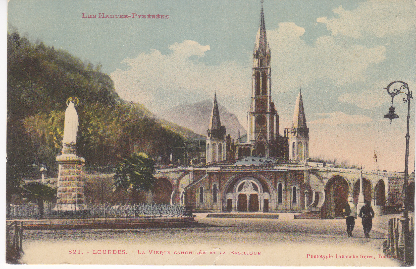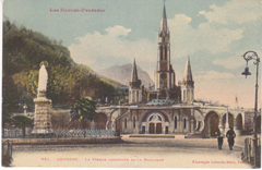 POSTCARD #446 La Vierge Canonisée et La Basilique [The Canonized Virgin and the Basilica], Lourdes, Les Hautes-Pyrénées [France]. 821. Phototypie Labouche frères, Toulouse [France]. 5.5" x 3.5" EXC