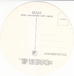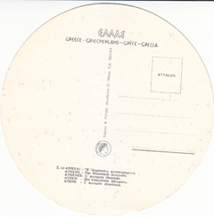 POSTCARD #180 Athens [Greece]. B. 46. Copyright Reserved 1965 by Attalos. [Address in Greek.]. 6" diameter. VG