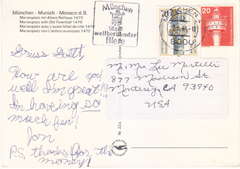 POSTCARD #342 Marienplatz and the Old Townhall, 1470 München [Munich, Germany]. [All other writing is obscured by mailing label]. 5.75" x 4" EXC