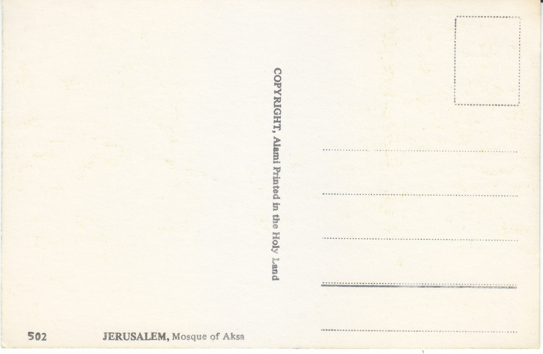POSTCARD #090 Mosque of Aksa, Jerusalem [Israel]. 502. Copyright Alami, Printed in the Holy Land. 5.75" x 3.75" EXC