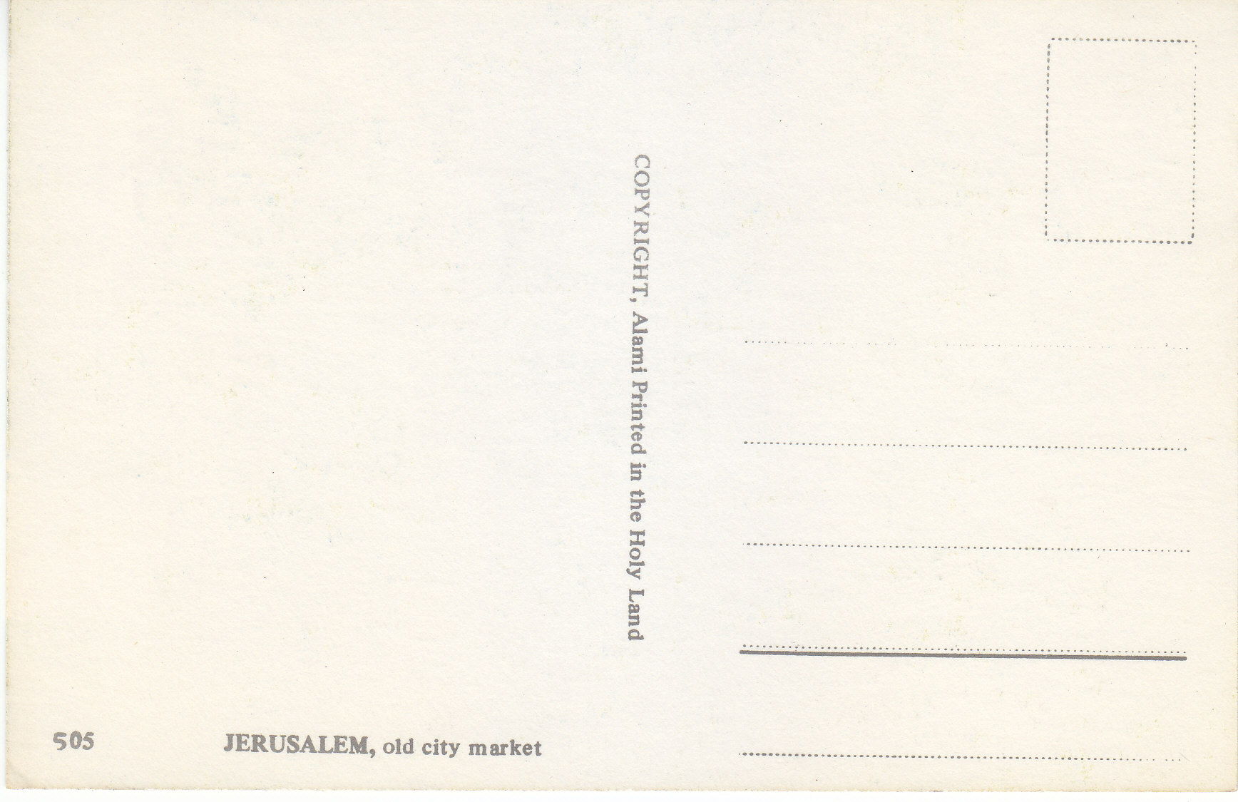POSTCARD #092 Old city market, Jerusalem [Israel]. 505. Copyright Alami, Printed in the Holy Land. 5.75" x 3.75" EXC
