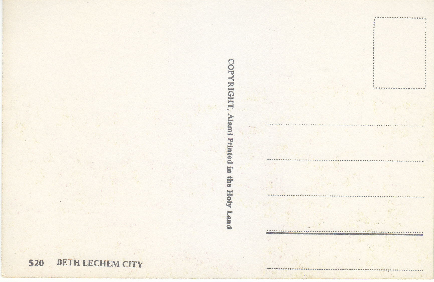 POSTCARD #094 Beth Lechem City [Israel]. 510. Copyright Alami, Printed in the Holy Land. 5.75" x 3.75" EXC