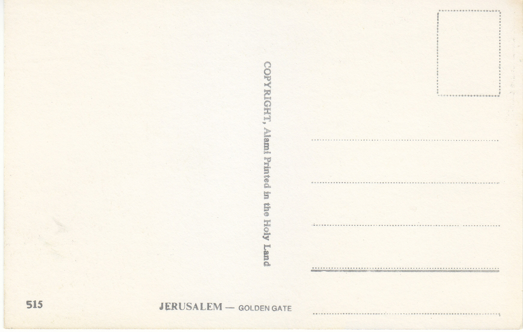 POSTCARD #110 Golden Gate, Jerusalem [Israel]. 515. Copyright Alami. Printed in the Holy Land. 3.75" x 5.75" EXC