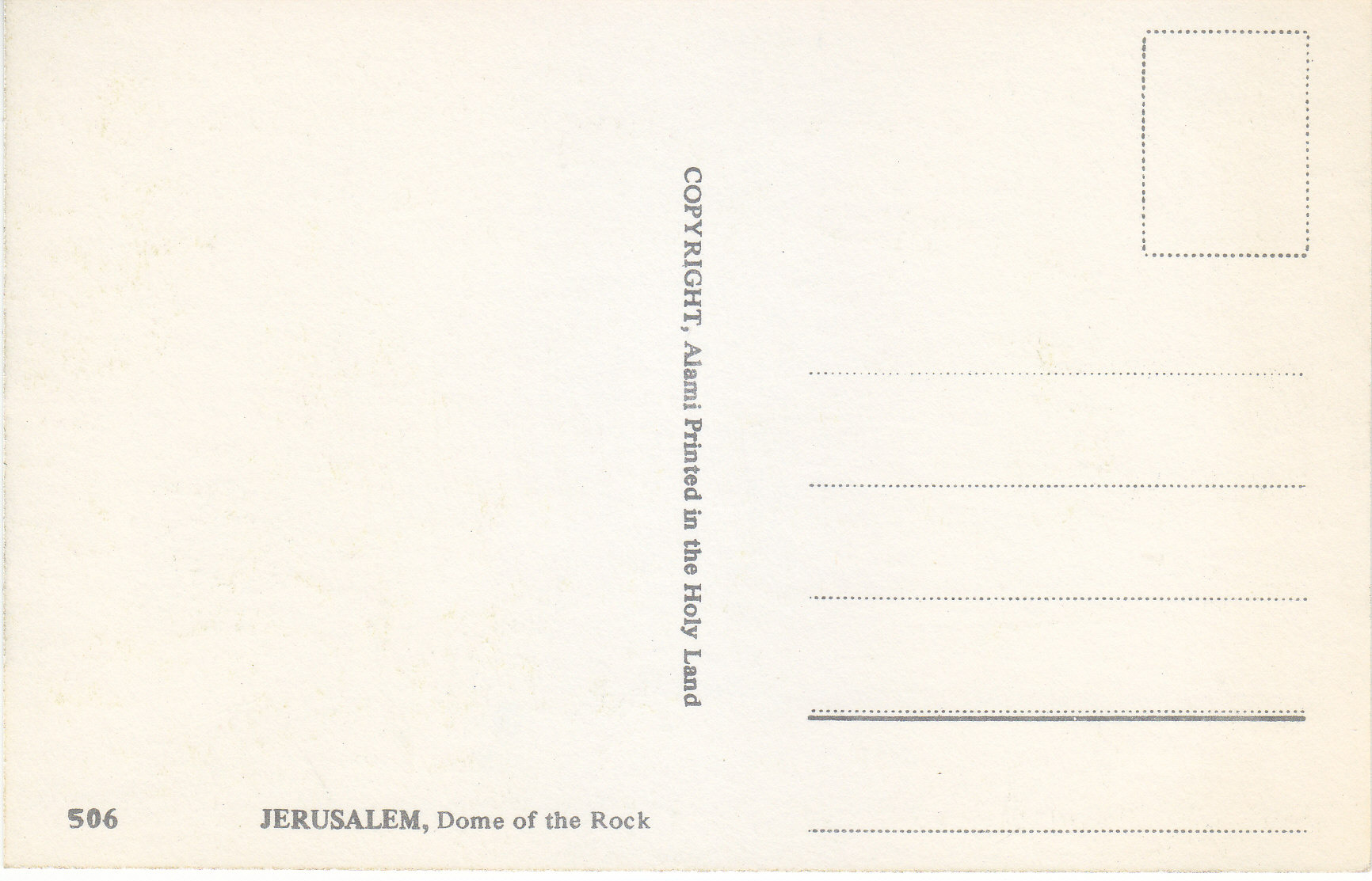 POSTCARD #125 Dome of the Rock, Jerusalem [Israel]. 506. Copyright Alami. Printed in the Holy Land. 5.75" x 3.75" EXC